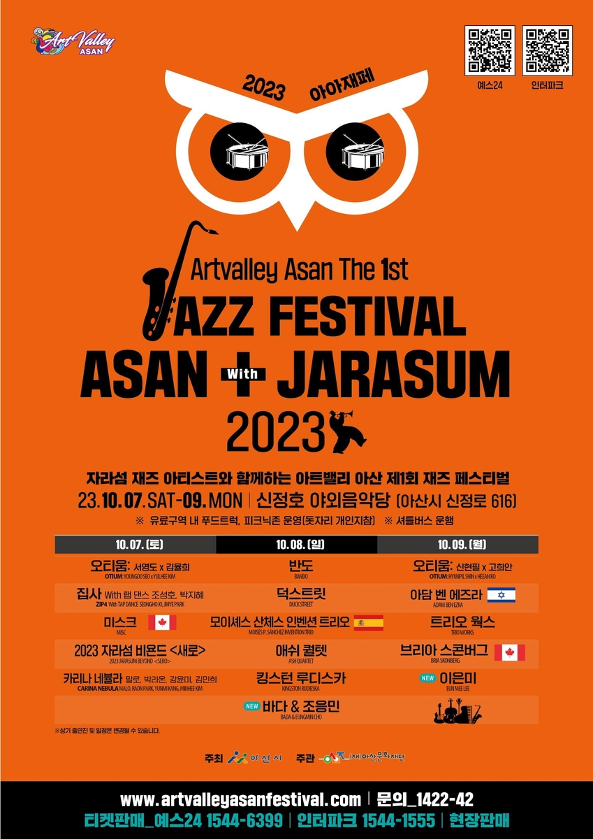 '아트밸리 아산 제1회 재즈 페스티벌 위드 자라섬' 7∼9일 열려
