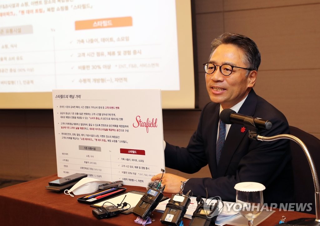 | ▲ 광주에 복합쇼핑몰 스타필드 조성 추진 (광주=연합뉴스) 천정인 기자 = 17일 오전 광주 서구 라마다호텔에서 신세계프라퍼티 임영록 대표가 어등산 관광단지 개발 부지에 복합쇼핑몰(스타필드 광주)을 조성하는 계획을 발표하고 있다. 2022.8.17 iny@yna.co.kr |