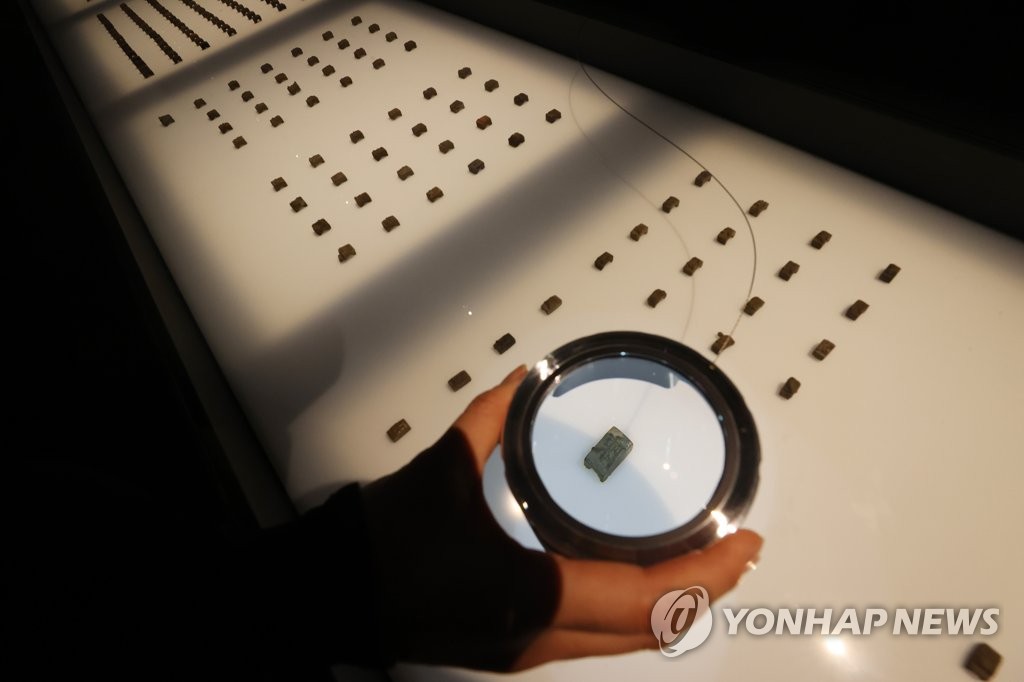 | ▲ 조선시대 전기 한글·한자 활자들 지난해 '인사동 출토유물 공개전' 전시 모습 [연합뉴스 자료사진] |