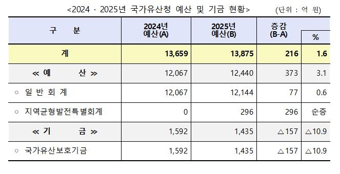 국가유산청 내년 예산 1조3천875억원…올해보다 1.6% 늘어