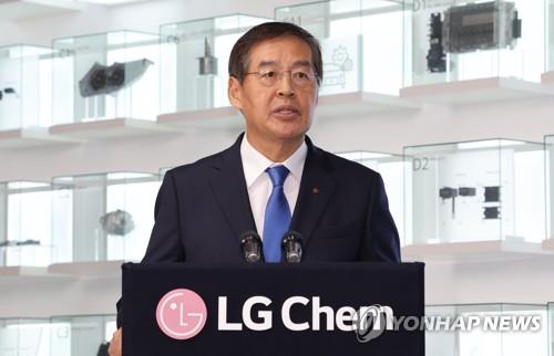 | ▲ This file photo shows LG Chem CEO Shin Hak-cheol speaking at LG Science Park, a research and development complex of the South Korean conglomerate, in Seoul on July 19, 2022. (Yonhap) |