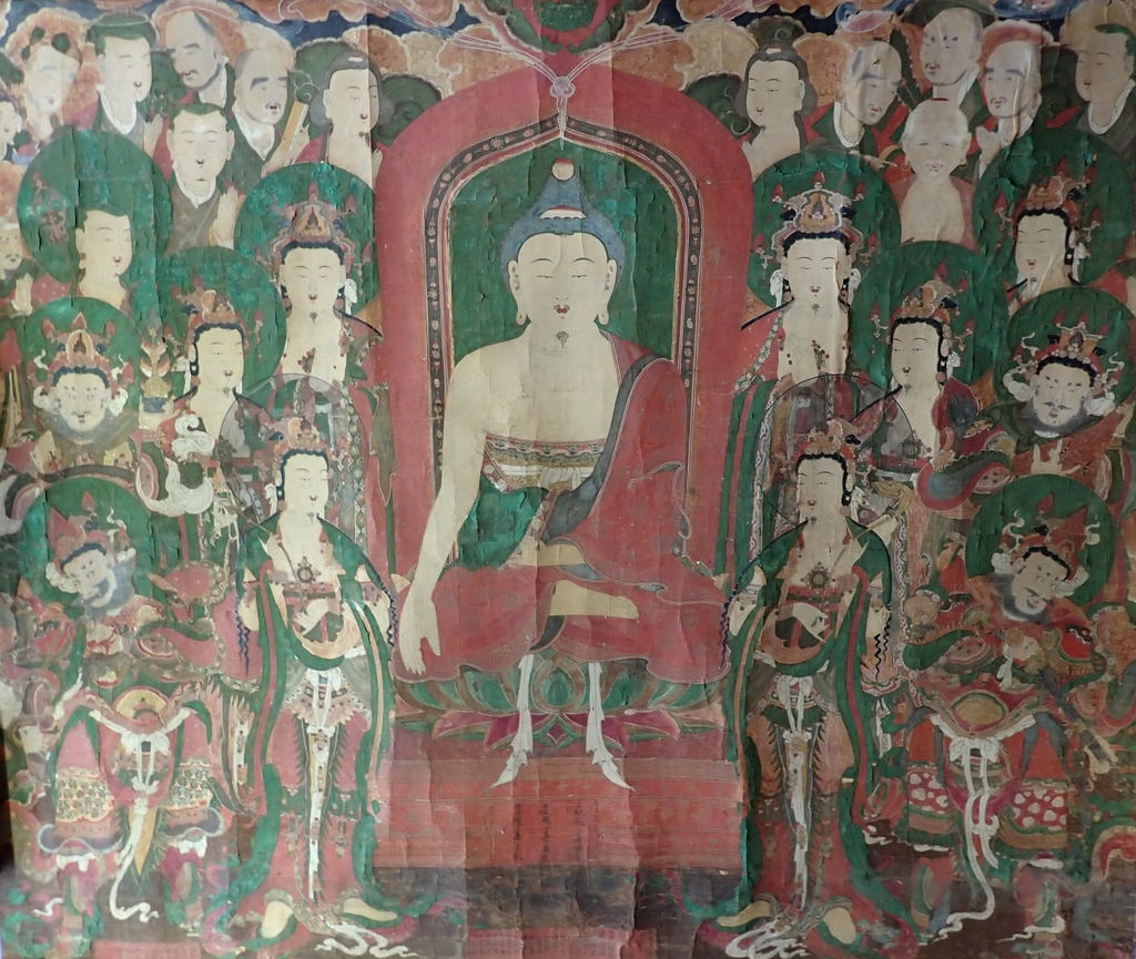 기장 고불사 영산회상도는 석가모니가 법화경을 설법하는 순간을 표현한 불화다.