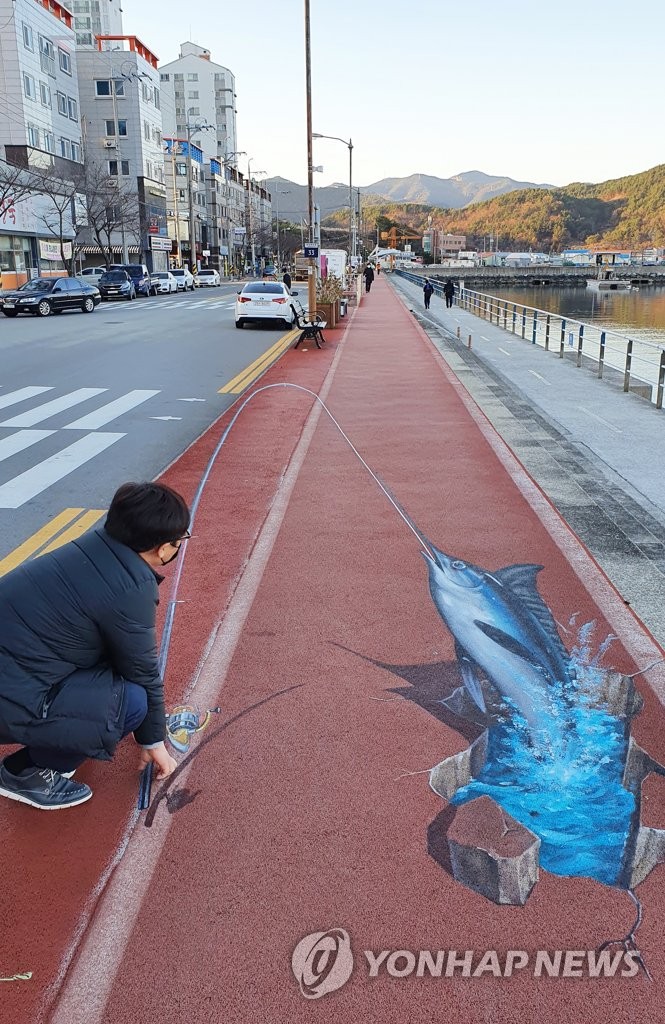 (통영=연합뉴스) 경남 통영시가 광도면 죽림신도시 해안가에 '트릭아트' 작품을 그려 22일 공개했다.