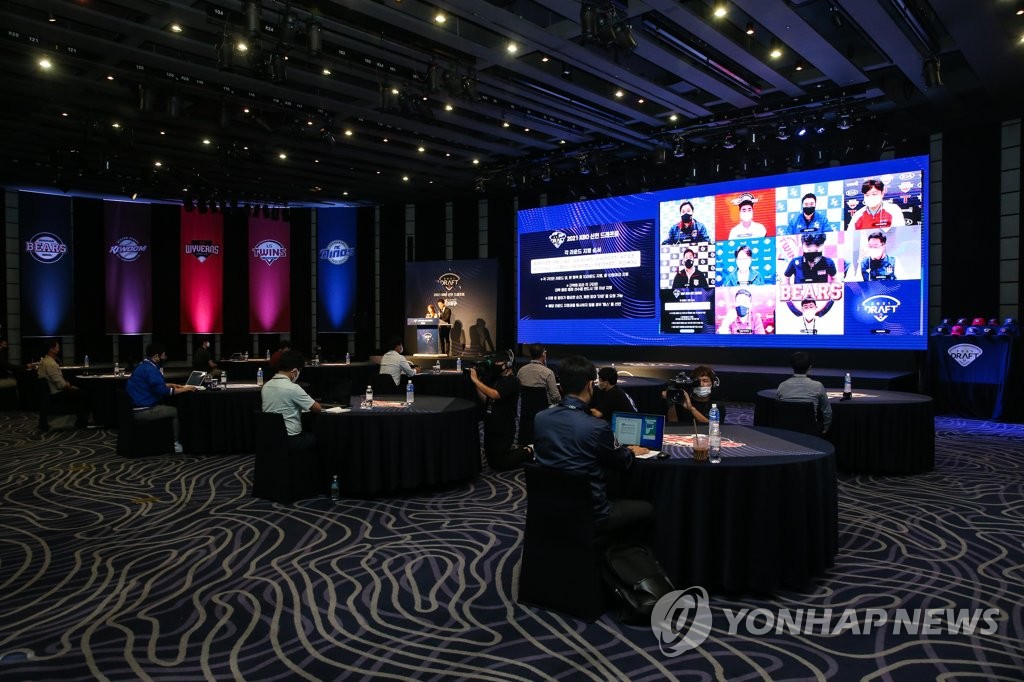 | ▲ This photo provided by the Korea Baseball Organization (KBO) on Sept. 21, 2020, shows a video screen with officials from 10 KBO clubs taking part in the virtual amateur draft in Seoul. (PHOTO NOT FOR SALE) (Yonhap) |
