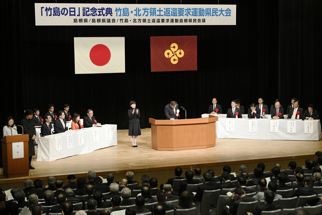 이날 오후 일본 시마네(島根)현 마쓰에(松江)시에 있는 시마네 현민회관에선 일본의 독도 영유권을 주장하는 다케시마의 날 행사가 일본 정부의 차관급 인사가 참석한 가운데 열렸다.