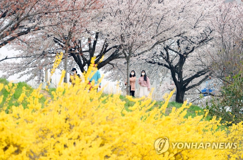 부산은 낮 기온이 최고 20도까지 오르는 포근한 날씨를 보이며 주요 명소마다 만개한 벚꽃을 구경하러 나온 상춘객으로 붐볐다.