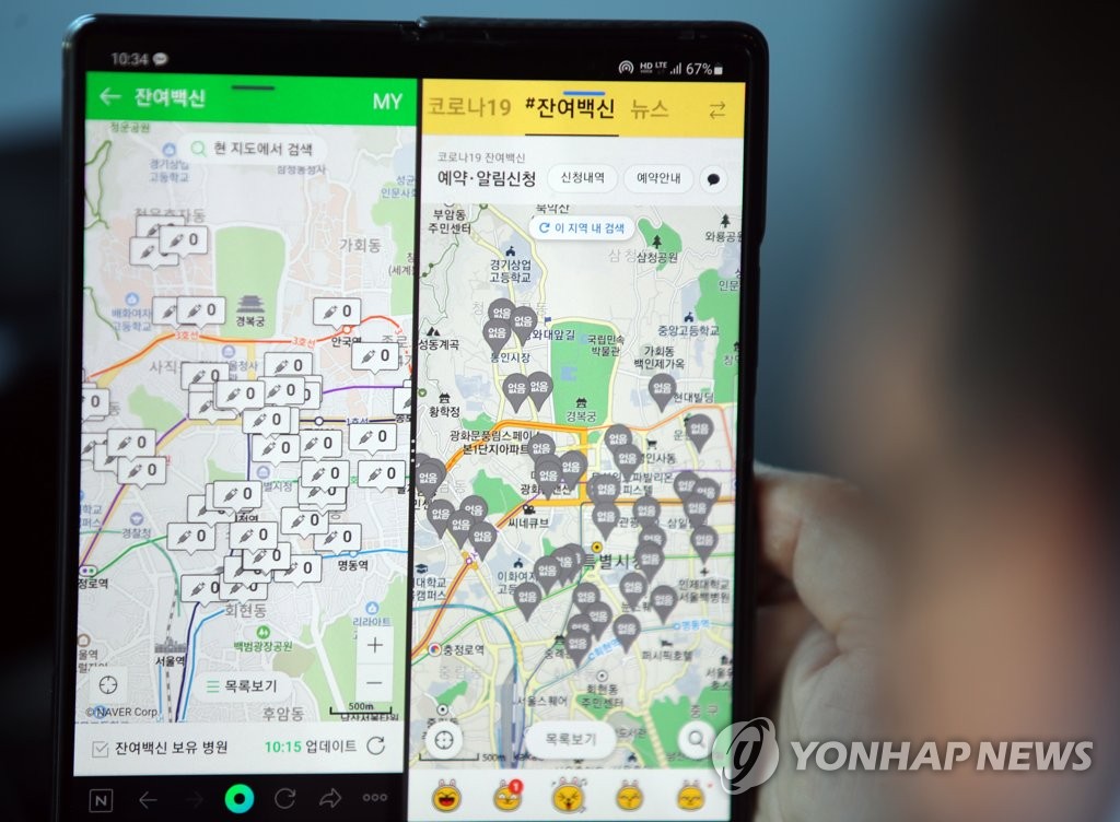 | ▲ A smartphone app image shows there were no leftover COVID-19 vaccines at hospitals and vaccination centers on June 4, 2021. (Yonhap) |