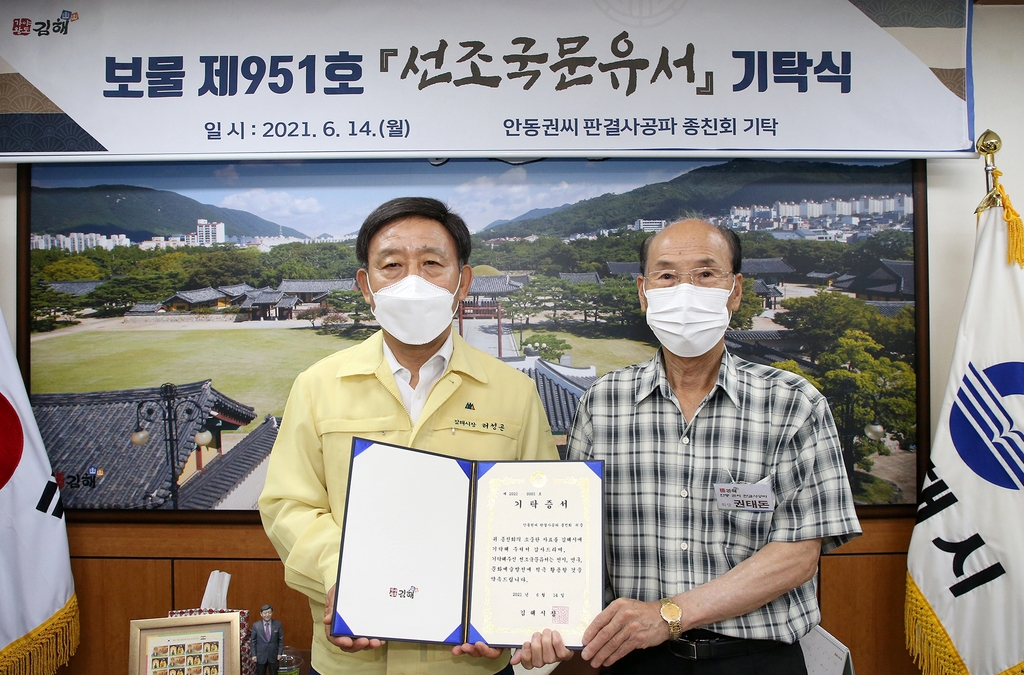 허성곤 시장은 "선조국문유서 보존과 연구를 위해 최선의 노력을 기울이겠다"고 밝혔다.