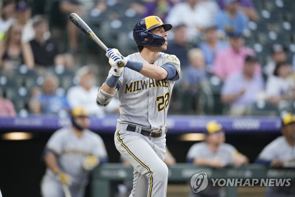 밀워키 브루어스의 간판타자 크리스천 옐리치(31)가 7일(한국시간) 미국 콜로라도주 덴버 쿠어스필드에서 열린 콜로라도 로키스와의 방문 경기에서 1회 쿠어스 필드 우측 외야 3층에 떨어지는 큼지막한 1점 홈런을 쳤다.