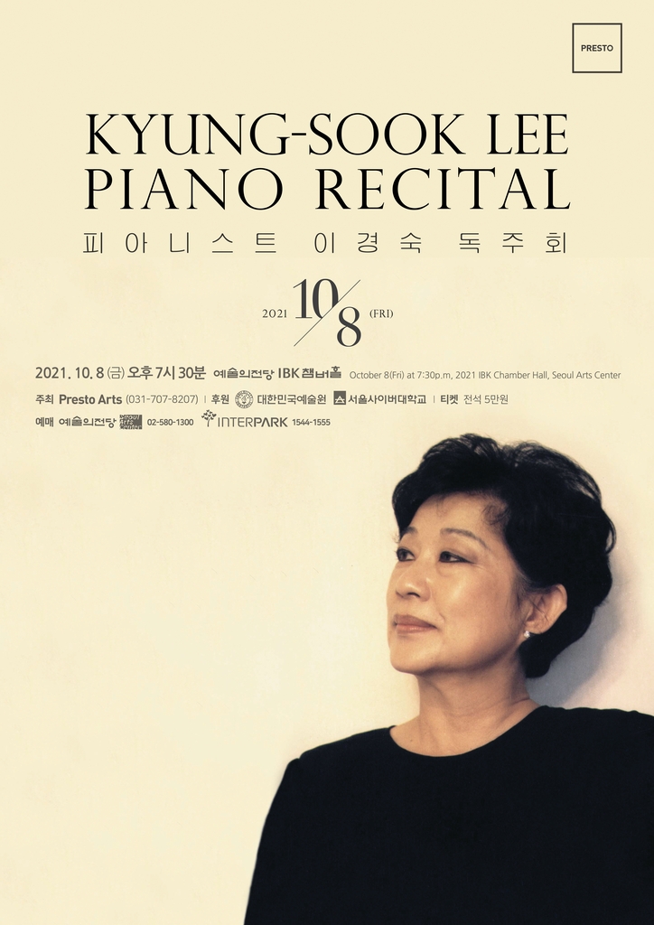 ▲ '한국 피아노의 대모' 이경숙 독주회 = '한국 피아노의 대모'로 불리는 1세대 피아니스트 이경숙 연세대 명예교수가 이달 8일 오후 7시 30분 서초구 예술의전당 IBK챔버홀에서 독주회를 연다. 2019년 이후 2년 만이다.