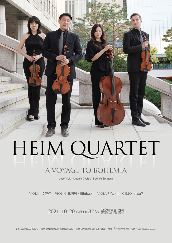 ▲ 하임 콰르텟 '보헤미아 음악여행' = 서울시립교향악단 단원들로 구성된 현악 사중주단 하임 콰르텟이 이달 20일 오후 8시 서대문구 금호아트홀 연세에서 '보헤미아 음악여행' 공연을 한다.