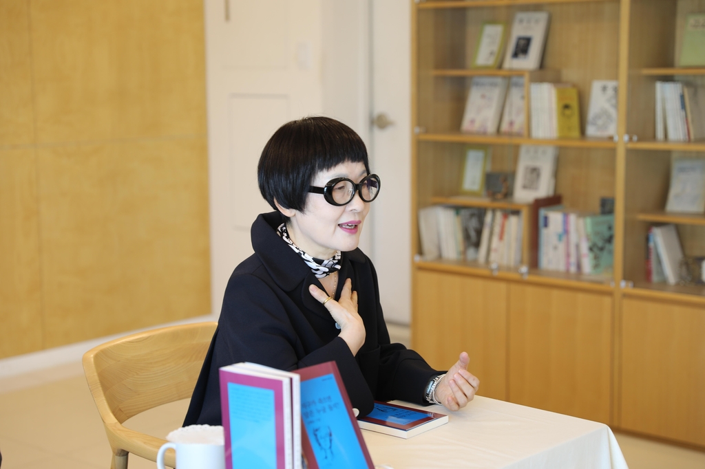| ▲ 14번째 시집 낸 김혜순 시인 28일 마포구 문학과지성사 사옥에서 인터뷰하는 김혜순 시인. [문학과지성사 제공] |