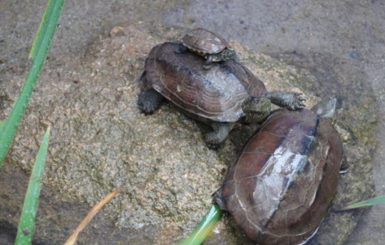(영암=연합뉴스) 조근영 기자 = 전남 영암 월출산국립공원사무소는 따뜻한 기온으로 겨울잠을 잊어버린 남생이들이 월출산에서 노닐고 있는 모습이 최근 포착됐다고 26일 밝혔다.