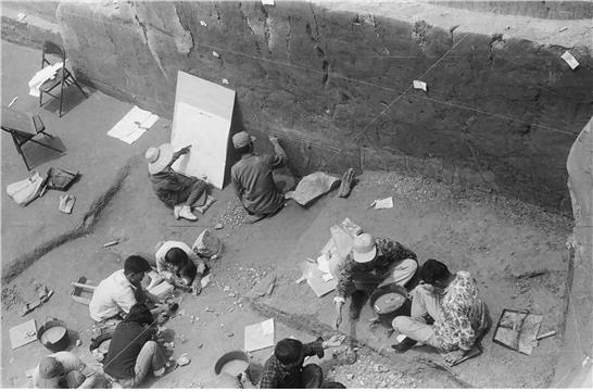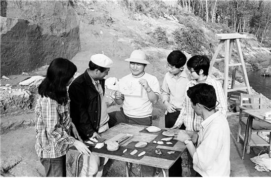 | ▲ 발굴 대원들에게 설명하는 고(故) 손보기 교수(가운데) [연세대 박물관 제공. 재판매 및 DB 금지] |
