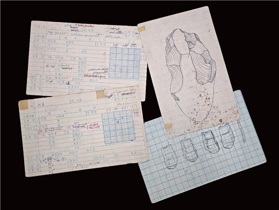 당시 현장을 기록한 발굴 일지와 유물 카드 등에는 흑요석 좀돌날, 주먹도끼 등을 발굴했던 상황이 빠짐없이 적혀 있다.