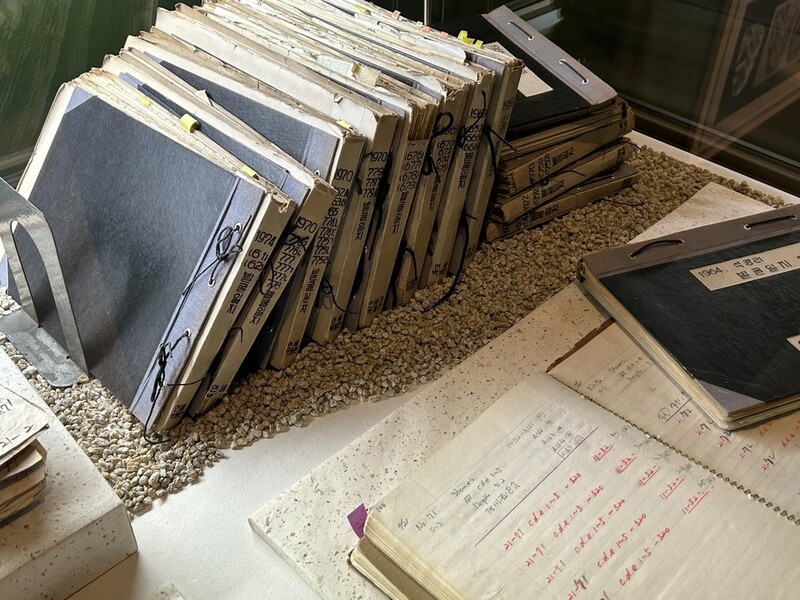 | ▲ 석장리 유적 발굴 조사 기록 (서울=연합뉴스) 김예나 기자 = 지난 19일 서울 연세대 박물관에서 개막한 '석장리, 기록을 만들다' 특별전에서 당시 발굴 조사 과정을 기록한 일지 등이 전시돼 있다. 2024.11.26