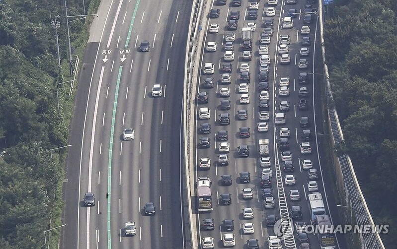 이날 오후 1시 기준 승용차로 서울 요금소를 출발하면 부산까지 7시간 20분, 울산 6시간 38분, 대구 5시간 58분, 목포 7시간 10분, 광주 6시간 20분, 강릉 4시간 50분, 대전 4시간 등이 소요됐다.