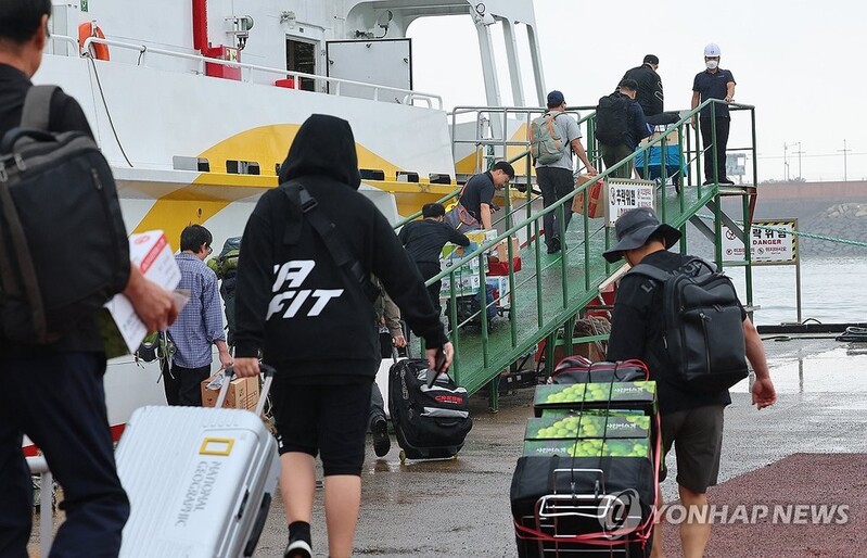 | ▲ '여객선 타고 고향으로' (인천=연합뉴스) 임순석 기자 = 추석 연휴를 하루 앞둔 27일 오전 인천시 중구 인천항 연안여객터미널에서 귀성객들이 백령도행 여객선에 승선하고 있다. 2023.9.27 soonseok02@yna.co.kr |