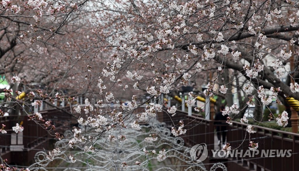 | ▲ 진해 벚꽃 개화 (창원=연합뉴스) 김동민 기자 = 국내 최대 봄꽃 명소인 경남 창원시 진해구 여좌천 로망스 다리 일대 벚나무가 진해군항제를 앞두고 개화해 시선을 끌고 있다. 2023.3.22 image@yna.co.kr |