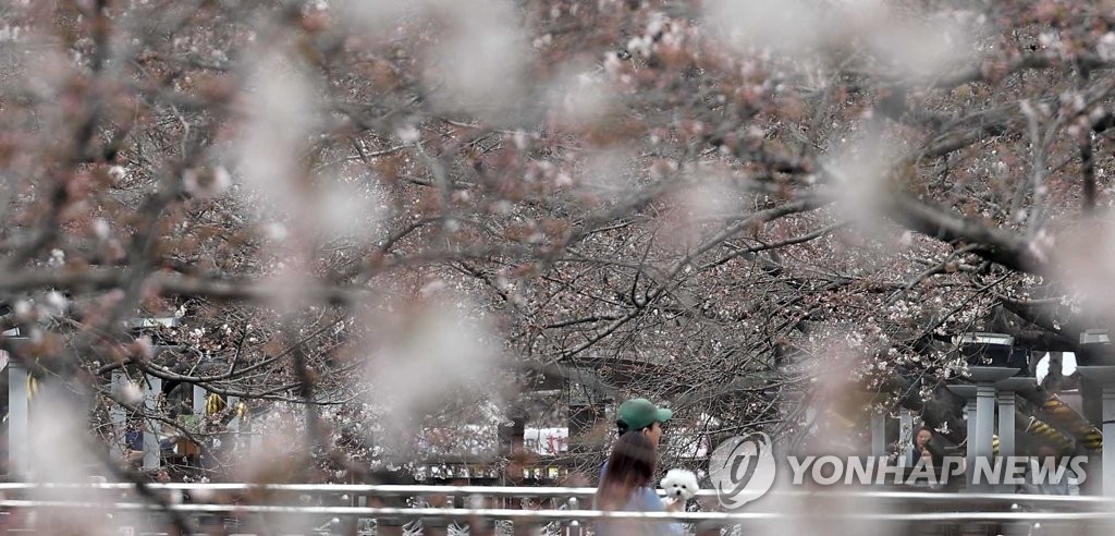 (창원=연합뉴스) 김동민 기자 = 국내 최대 벚나무 군락지인 경남 창원시 진해구의 벚꽃 개화 소식이 전해지면서 관광객 발길이 이어지고 있다.