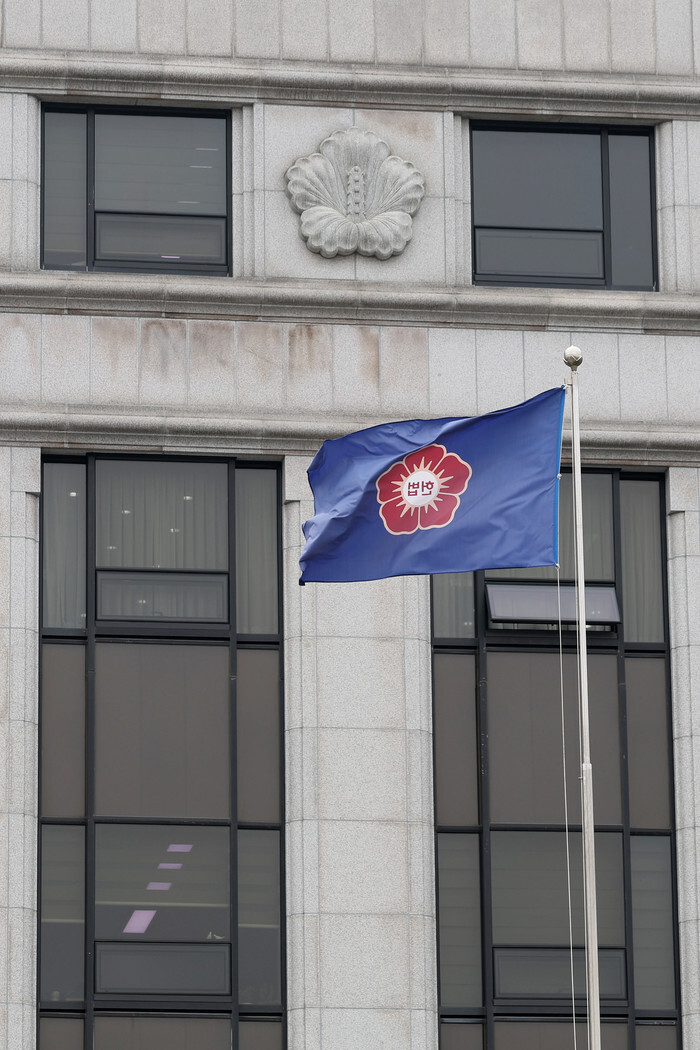 A flag of the Constitutional Court flutters inside the court compound in Seoul on April 2, 2025, two days before the court hands down a decision on whether to remove impeached President Yoon Suk Yeol from office or reinstate him over his brief imposition of martial law in early December. (Yonhap)
