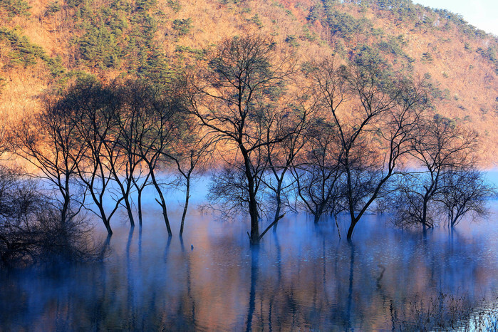 Fog-shrouded lake The Soyang Lake in Inje, 118 kilometers northeast of Seoul, is shrouded in mist on Dec. 10, 2024, in this photo provided by the county office. (PHOTO NOT FOR SALE) (Yonhap)(END)