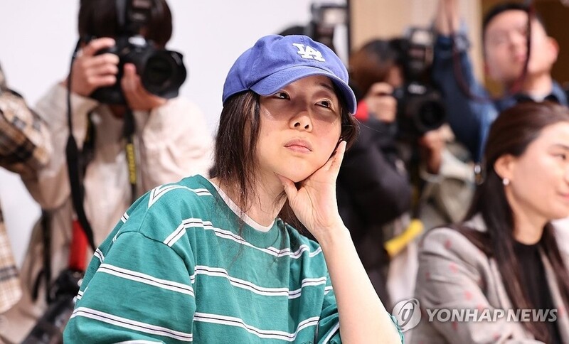 | ▲ 기자회견 나선 민희진 어도어 대표 (서울=연합뉴스) 윤동진 기자 = 민희진 어도어 대표가 25일 오후 서울 서초구 한국컨퍼런스센터 열린 입장 발표 기자회견에 참석하고 있다. 2024.4.25 mon@yna.co.kr |