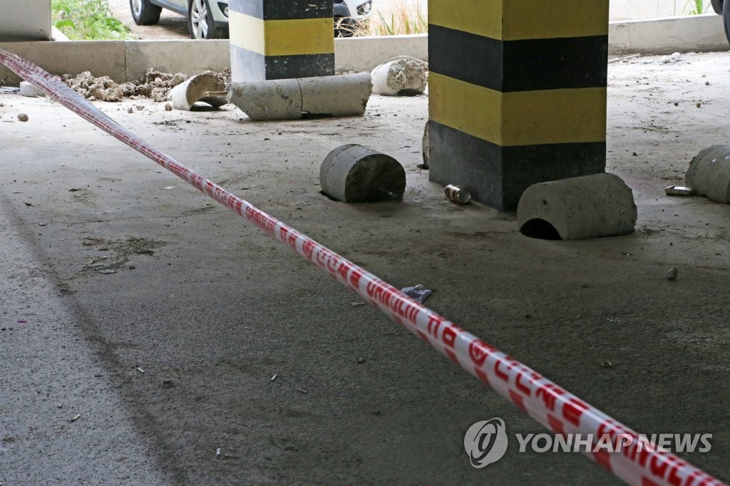 | ▲ 지반 침하로 부서진 출입로 (포항=연합뉴스) 손대성 기자 = 경북 포항시 북구 양덕동과 장성동 일대 지하 곳곳에 공동(빈 곳)이 발생한 것으로 나타났다. 29일 양덕동 한 건물 지반이 침하해 출입로가 부서져 있다. 2021.4.29 sds123@yna.co.kr |