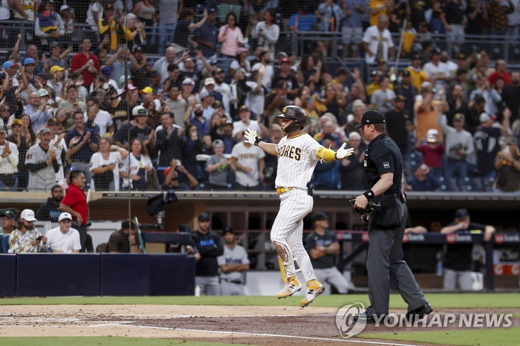 김하성이 다이아몬드를 도는 동안 샌디에이고 팬들은 기립 박수로 축하 인사를 건넸다.