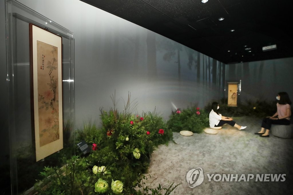 어두운 전시실에서는 마음을 차분하게 하는 빗소리와 새소리도 들린다. 봄기운 가득한 날, 툇마루에 앉아 모란을 감상하는 기분이 든다. 18∼19세기에 활동한 화가인 심사정, 신명연, 허련, 남계우가 그린 모란 그림도 곳곳에 걸렸다.