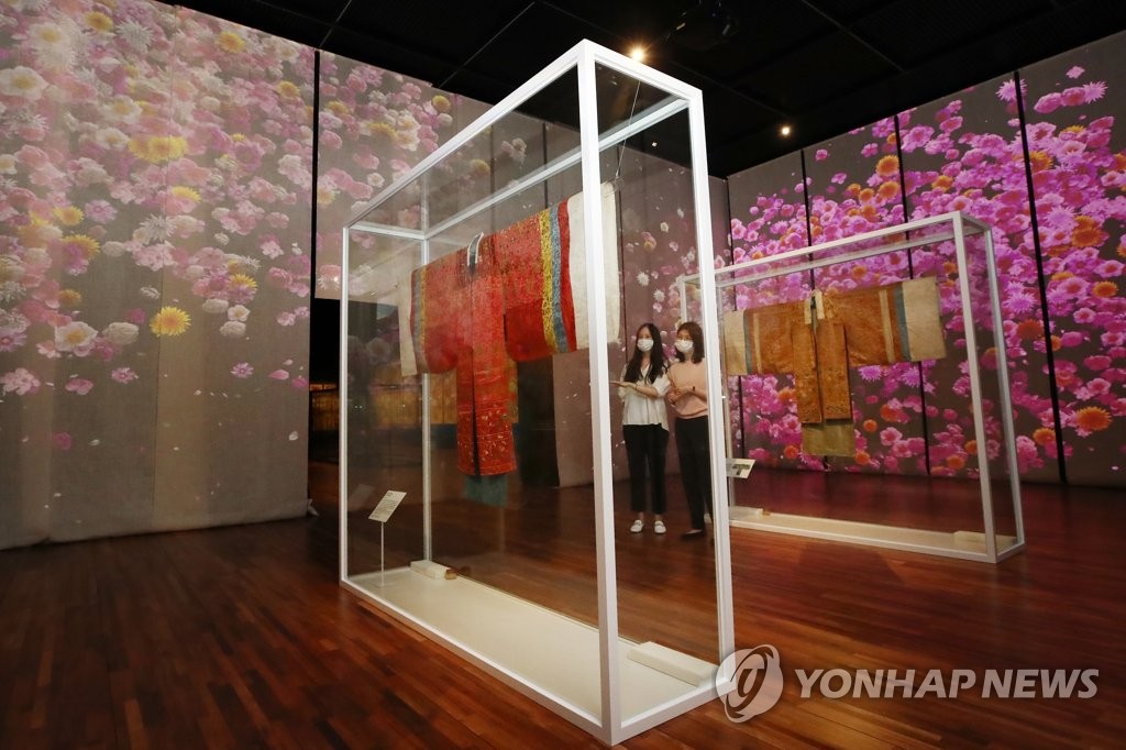 모란 무늬를 수놓은 여성 혼례복 2점도 눈길을 끈다. 그중 하나는 복온공주가 혼인할 때 입었다. 전통 혼례 때 여성이 입은 활옷 중 착용자와 제작 시기가 명확하게 알려진 유일한 유물이라고 한다.