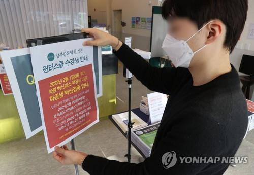 | ▲ An employee posts a notice informing visitors of a new requirement for vaccine passes at a cram school in Seoul on Dec. 7, 2021. (Yonhap) |