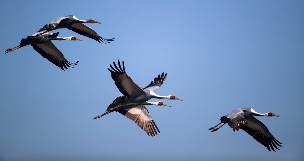 재두루미는 몽골, 중국, 러시아에서 번식한다.