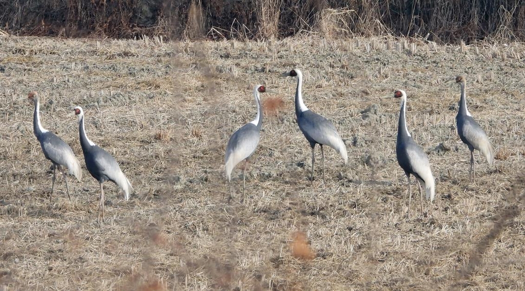 ▲ 창녕 우포늪 벌판 찾은 재두루미 6마리 [창녕군 제공. 재판매 및 DB 금지]
