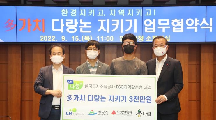 협약에 따라 LH 경남지역본부는 단장면 감물리 일대에 있는 다랑논에서 재배한 쌀 등 친환경 농산물을 구입·기부하는 방법으로 사회공헌활동을 한다.