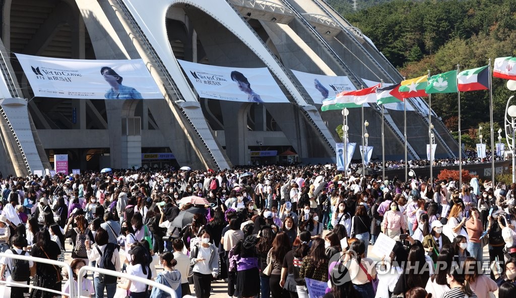 이날 오후 6시 부산 아시아드주경기장에서 열리는 2030 부산세계박람회 유치 기원 BTS 단독 콘서트 '옛 투 컴 인 부산'(Yet to Come in Busan)에는 5만2천 명이 공연을 관람한다.