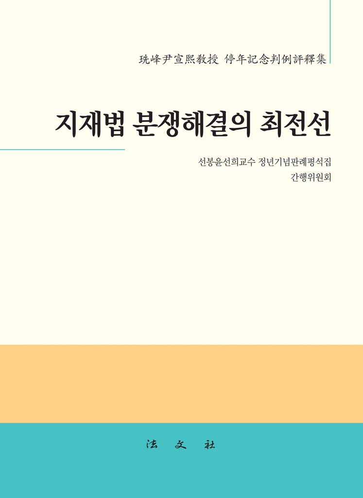 한국지식재산학회장과 대한중재인협회 부회장 등을 지낸 지식재산권 전문가인 윤선희 한양대 법학전문대학원 교수의 정년을 기념해 제자들이 정리한 판례평석집이다. 지식재산권법 가운데 특허법(실용신안법 포함), 디자인법, 상표법, 부정경쟁방지법, 저작권법 분야의 대표 판례 40개를 담았다.