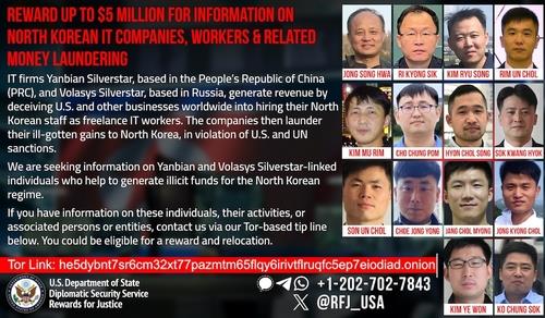 In May, it announced a reward of up to US$5 million for information on three North Korean IT workers and their manager who were engaged in a scheme enabling the workers to get illicit telework employment with false identities belonging to U.S. citizens.