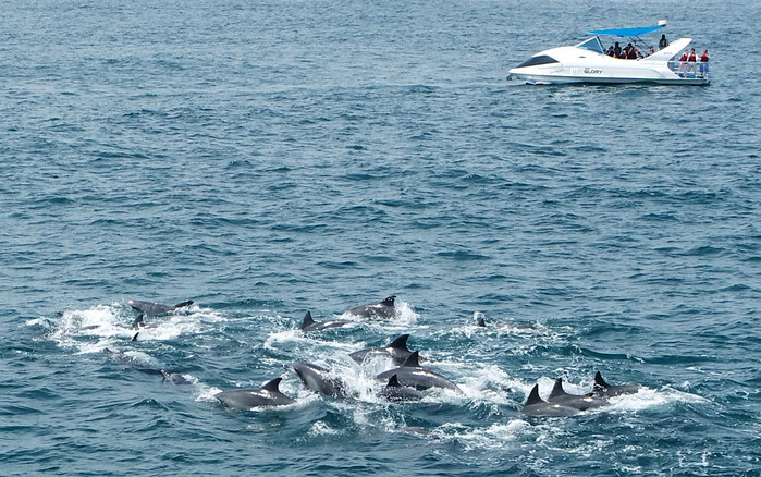 A shoal of bottlenose dolphins swims off South Korea's southern Jeju Island on July 20, 2022. (Yonhap)