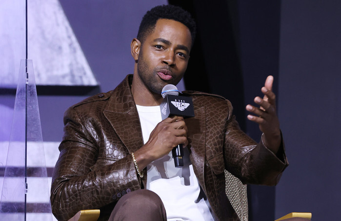 American actor Jay Ellis, who stars in the new movie "Top Gun: Maverick," speaks during a press conference at a Seoul hotel on June 20, 2022. The movie hits theaters in Korea on June 22. (Yonhap)