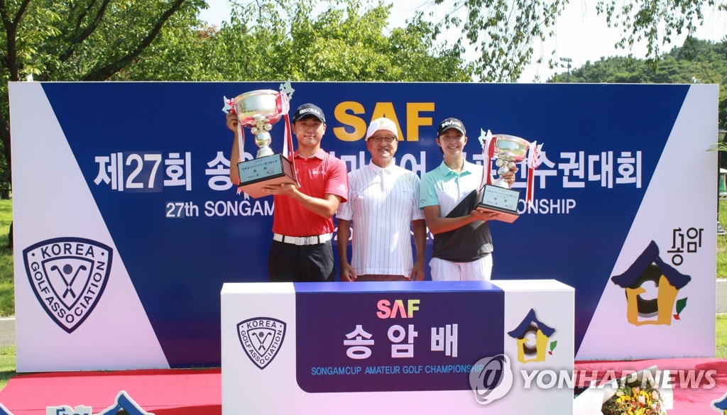 | ▲ 작년 우승자 조우영(왼쪽부터), 우기정 이사장, 박예지.송암배 아마추어 골프 선수권대회 [송암재단 제공. 재판매 및 DB 금지] |