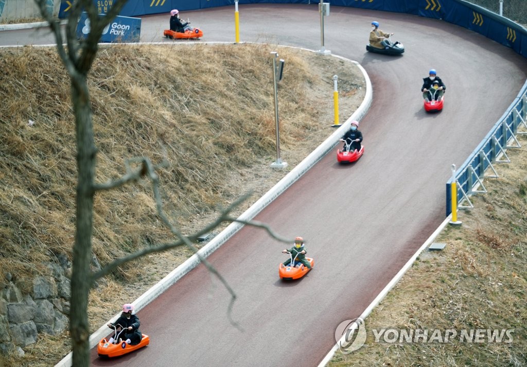 경북 청도에 개장한 루지 체험시설 군파크를 찾은 어린이들은 해발 600m에서 출발하는 폭 6m, 길이 1.88㎞ 트랙에서 속도감을 만끽하며 휴일을 보냈다.