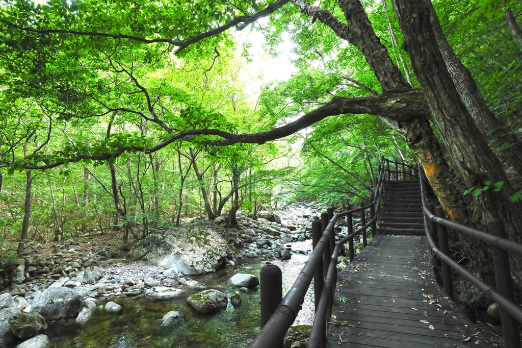 어사길은 구천동 초입부터 인월담, 사자담, 신양담, 구천폭포, 백련사까지 이어진다.