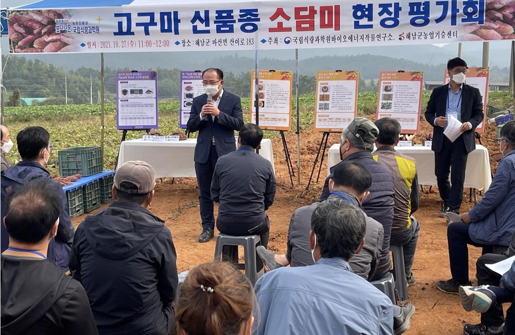 해남군 마산면 고구마 농가에서 열린 이번 평가회는 국립식량과학원과 해남군농업기술센터가 공동으로 주관했다.
