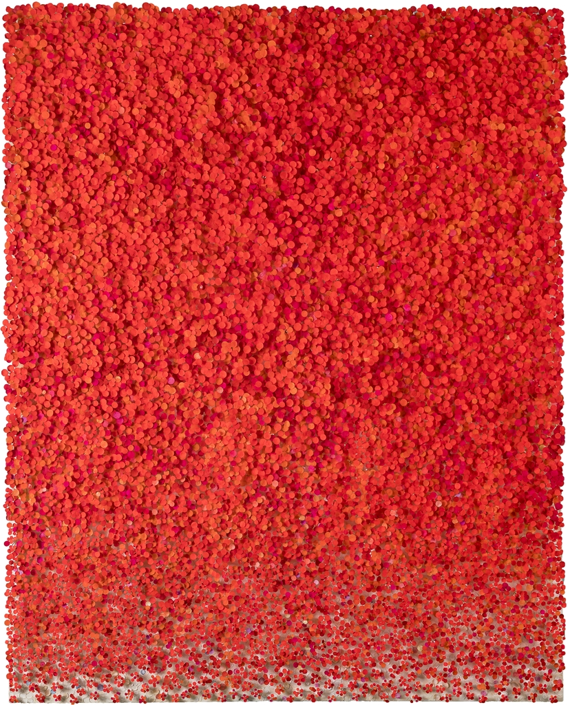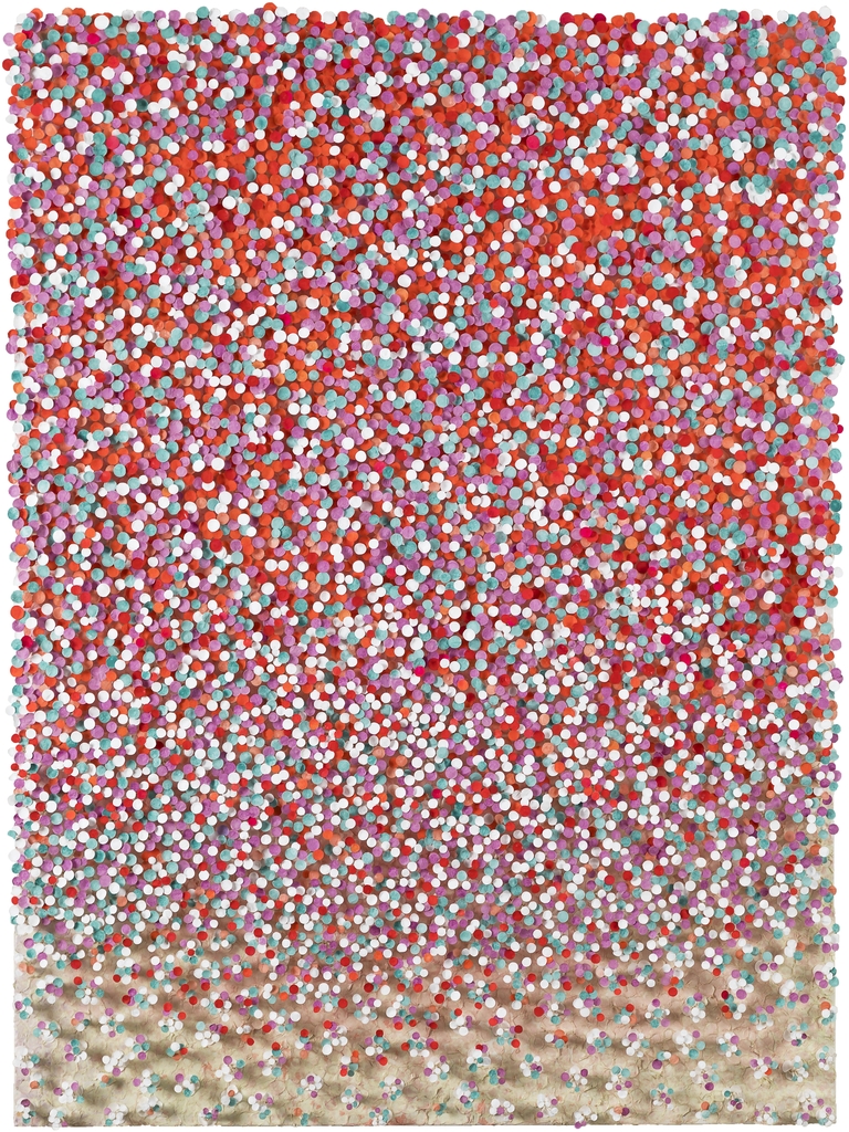 (서울=연합뉴스) 강종훈 기자 = 한지를 오려 꽃잎을 만들고 한지 조각을 말아 꽃대를 만든다. 캔버스 위에 꽃대를 세우고 한지 꽃잎을 붙인다. 수천 개에서 수십만 개의 한지 조각으로 만든 꽃밭이 화면에 펼쳐진다.