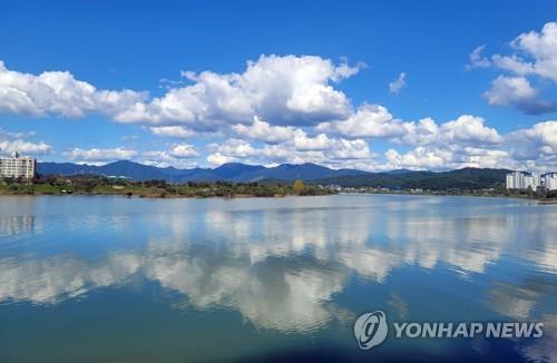 | ▲ 그림 같은 가을 하늘 (춘천=연합뉴스) 양지웅 기자 = 8일 강원 춘천시 소양강 위로 파란 하늘과 뭉게구름이 어우러져 있다. 2022.10.8 yangdoo@yna.co.kr |