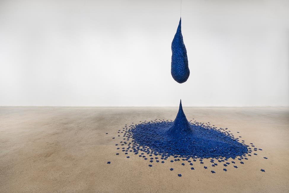 '홀딩 업'(Holding up)은 허공에 맺힌 거대한 눈물방울처럼 보이지만, 작품 표면의 꽃잎 형태는 빛을 내는 별처럼 보이기도 한다. 다음 달 12일까지.