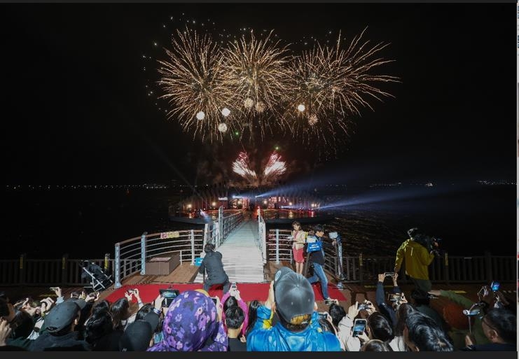 목포 밤 수놓은 해상W쇼, 올 첫 공연 성황