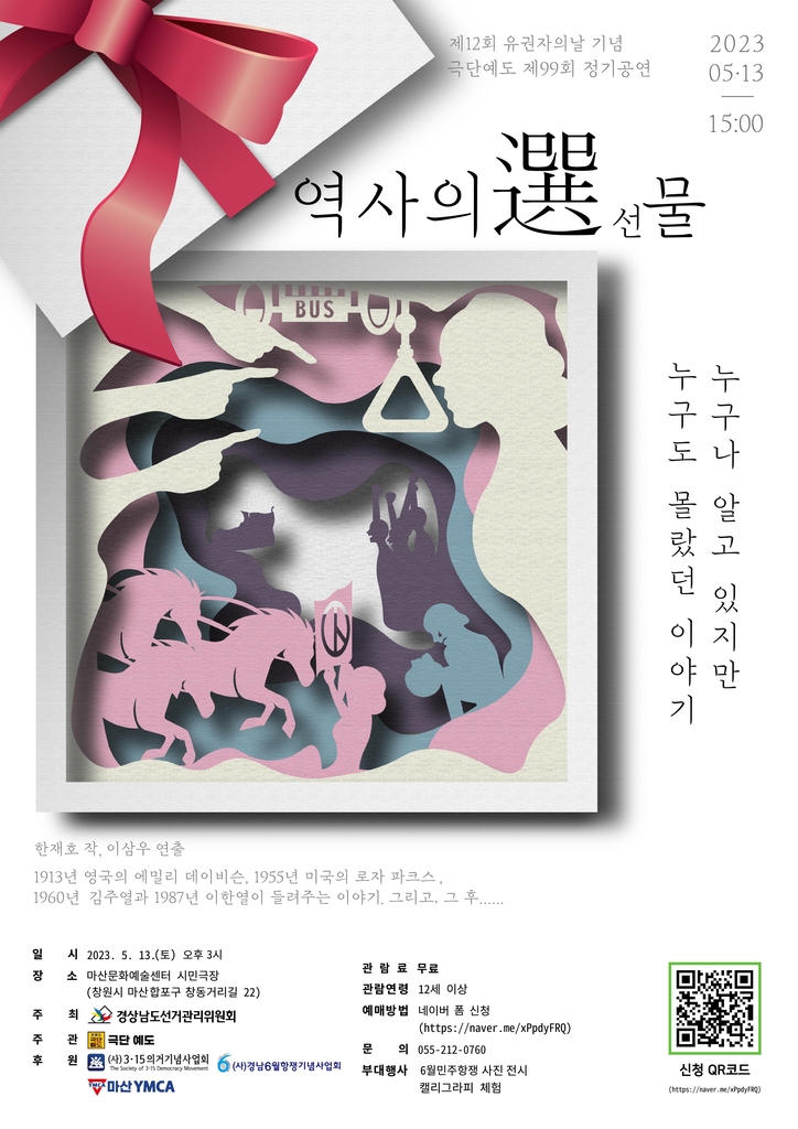 이 연극은 5월 13일 오후 3시 창원시 마산합포구 창동 마산문화예술센터 시민극장에서 공연된다.