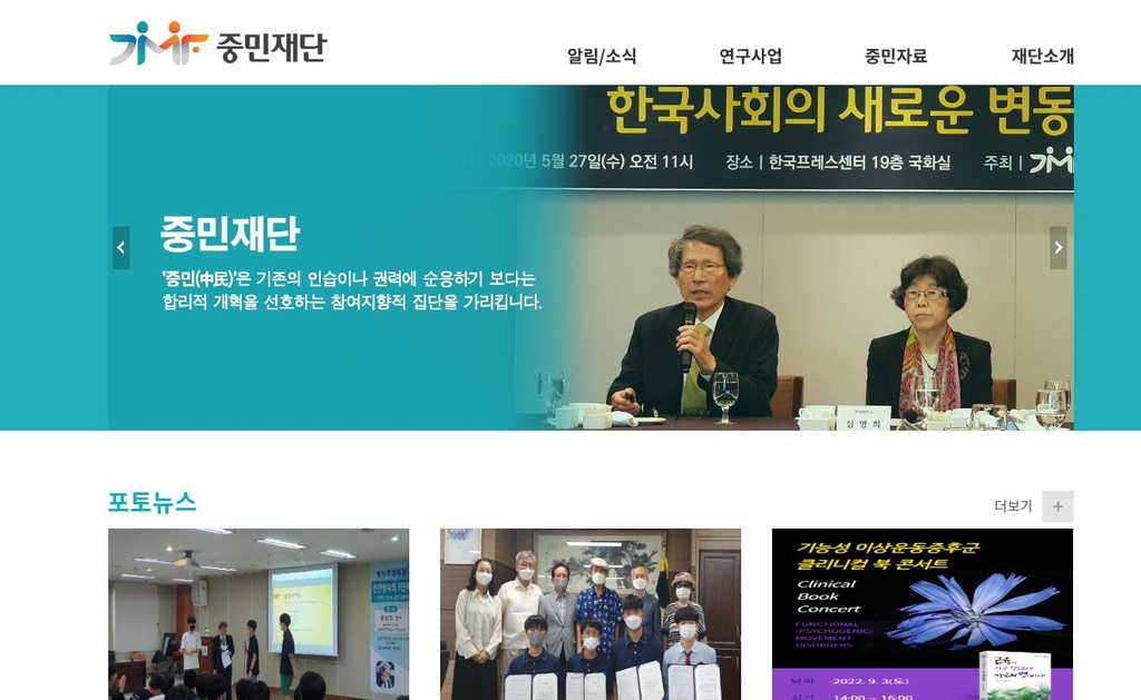 | ▲ 중민재단 누리집 [누리집 캡처. 재판매 및 DB 금지] |